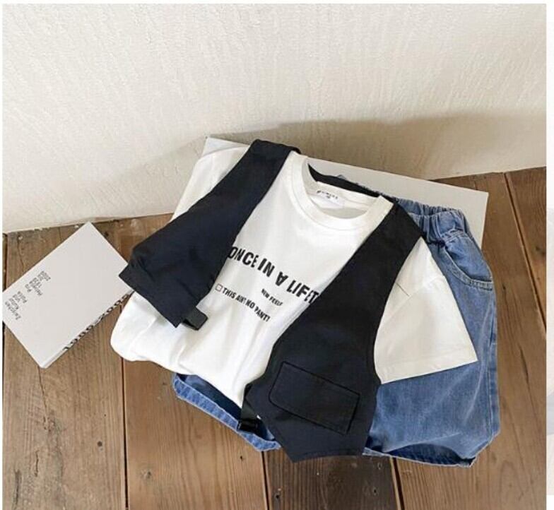 【2点セット】2022春夏新作 子供服 ベビー服 アパレル 袖なし ベスト+tシャツ 男の子