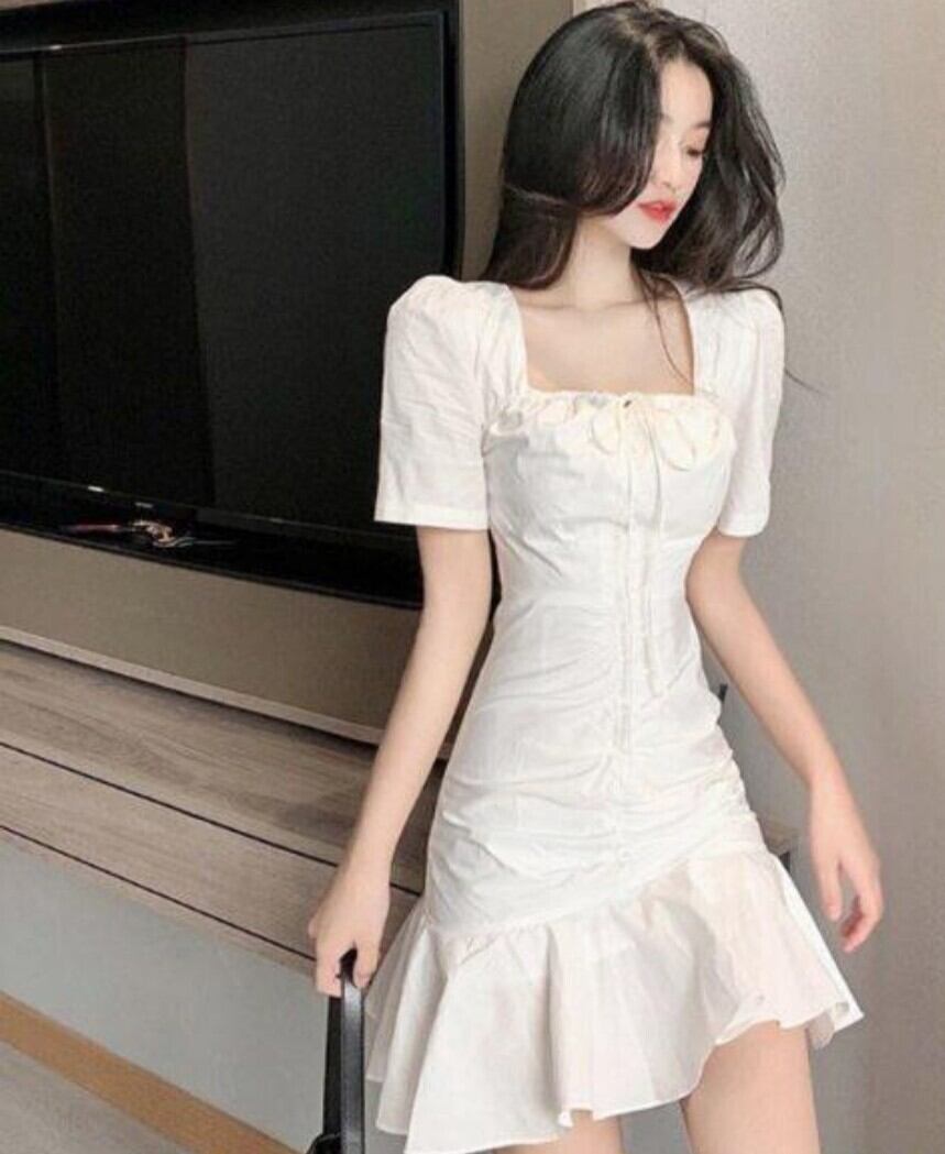 ワンピース 春夏 レディース 半袖 韓国風 無地 着やせ