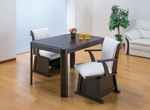 冬はこたつ、布団を外せば春~秋はダイニングテーブルとしてオールシーズン使えるラウンドこたつ。